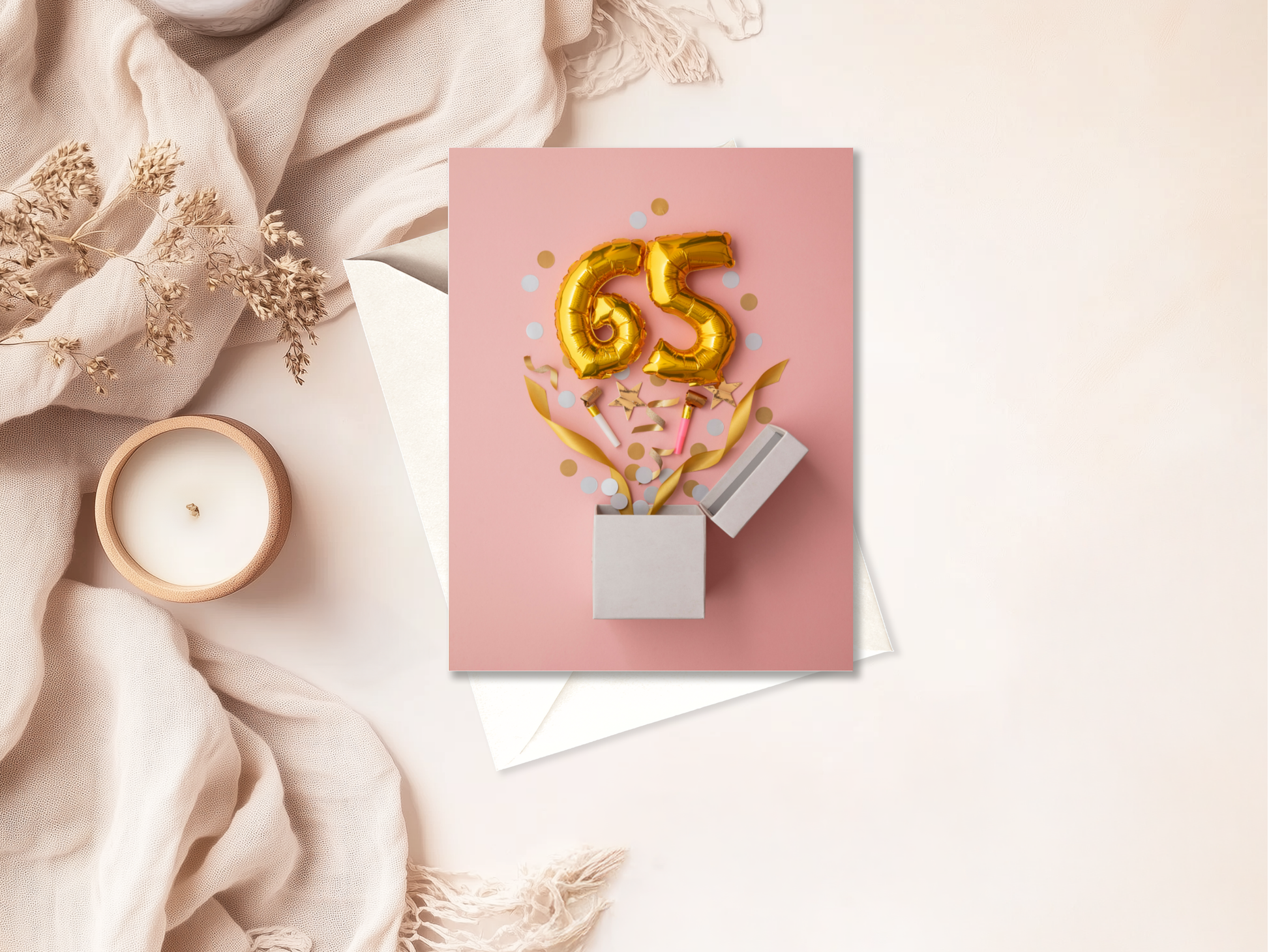 Mark their milestone 65th with our premium birthday card. High-quality print, perfect for that celebration.